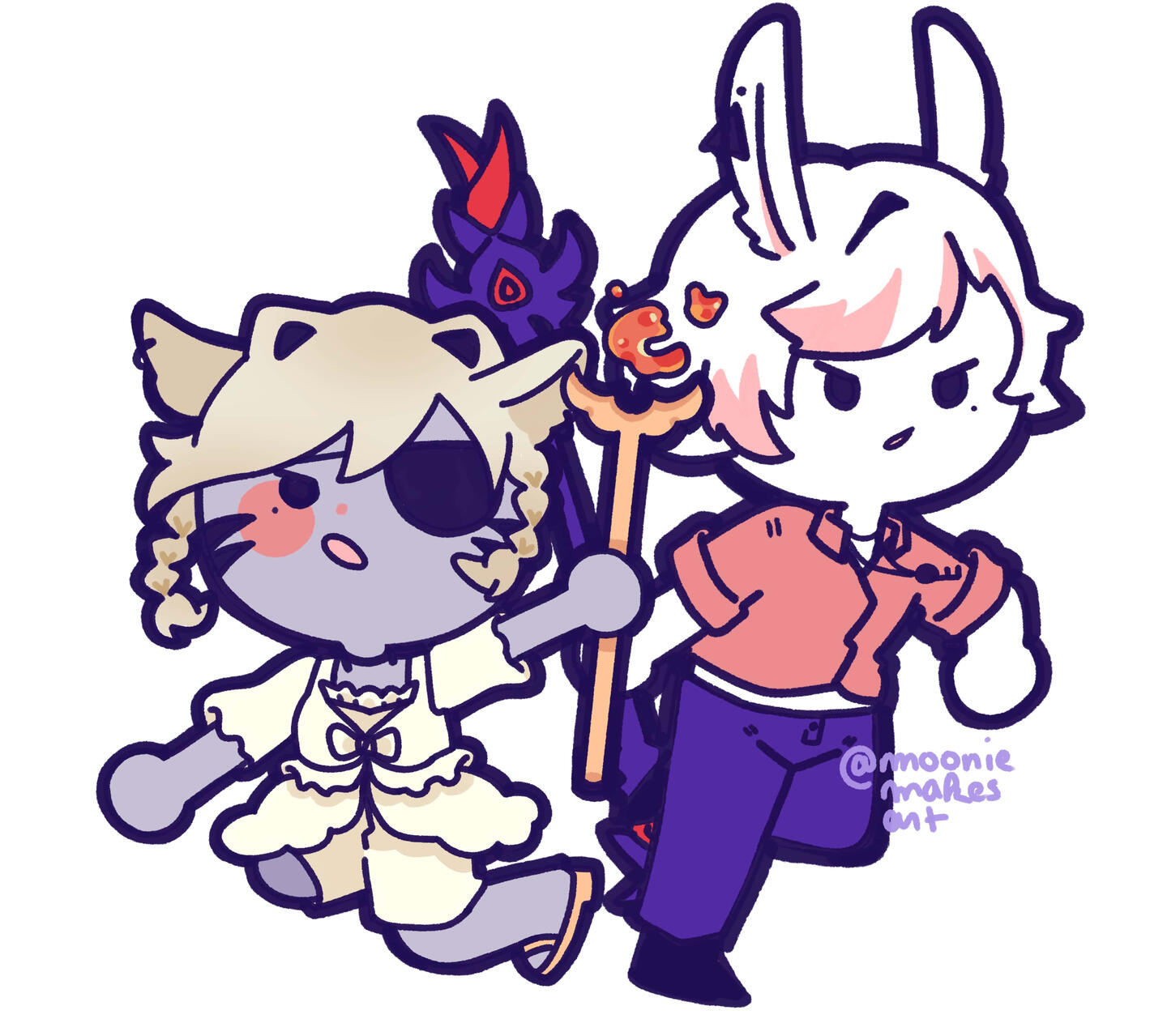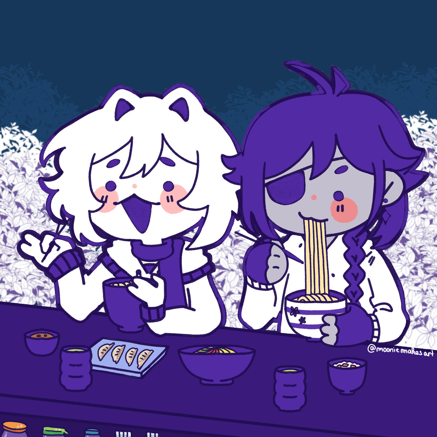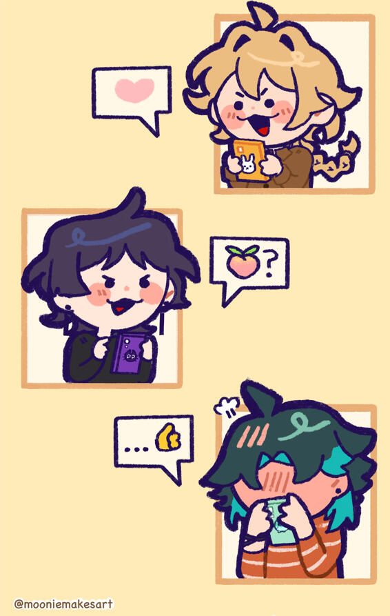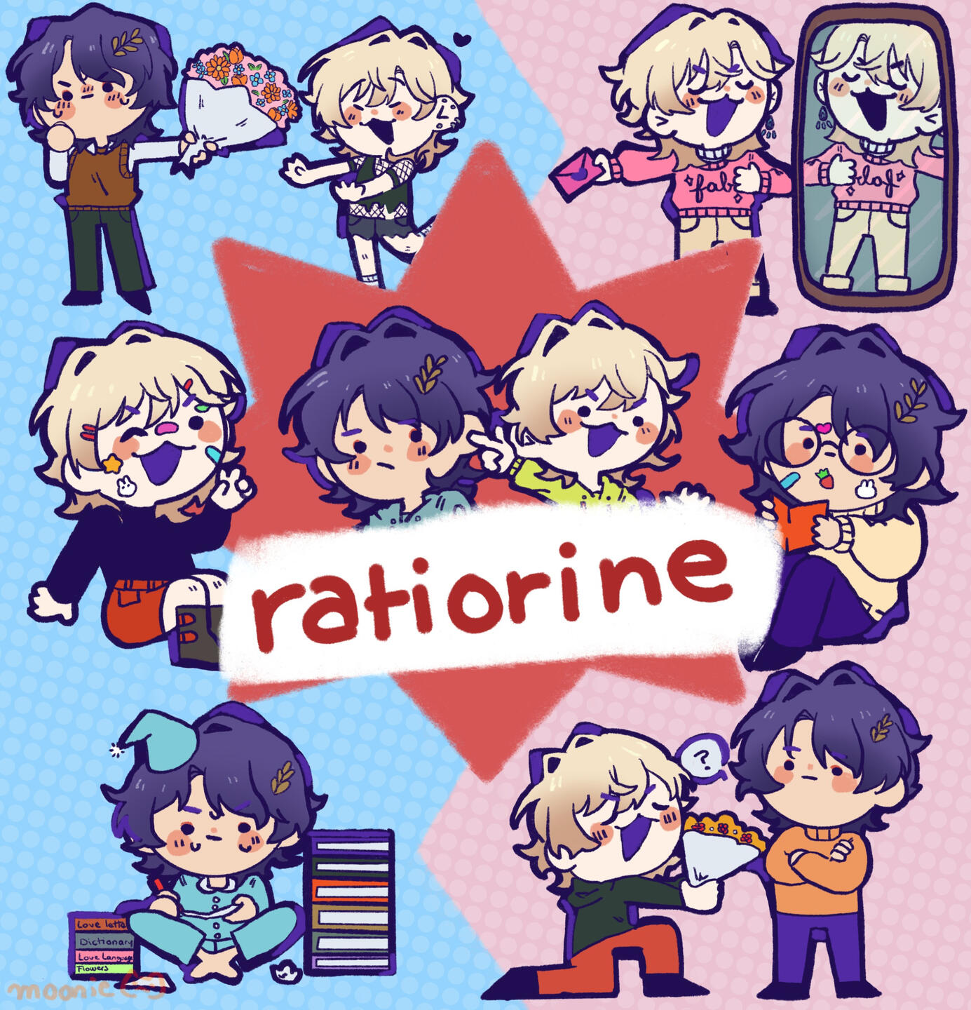 hi i'm moonie! i'm a self-taught artist with too many loved characters to draw. i enjoy cute and colorful things, ducks, and many ships. i enjoy most pairings even if i don't draw them often, i just want everyone to hold hands. nice to meet you!